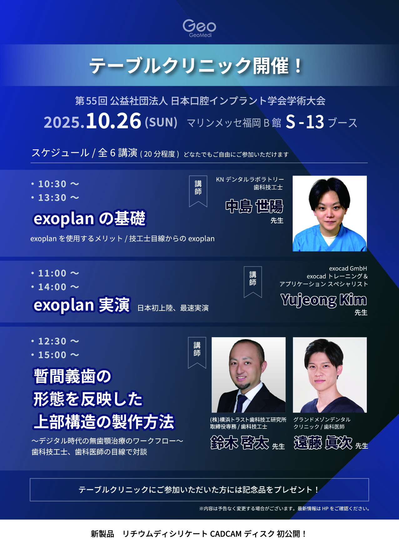 第55回 公益社団法人 日本口腔インプラント学会学術大会 テーブルクリニックのお知らせ